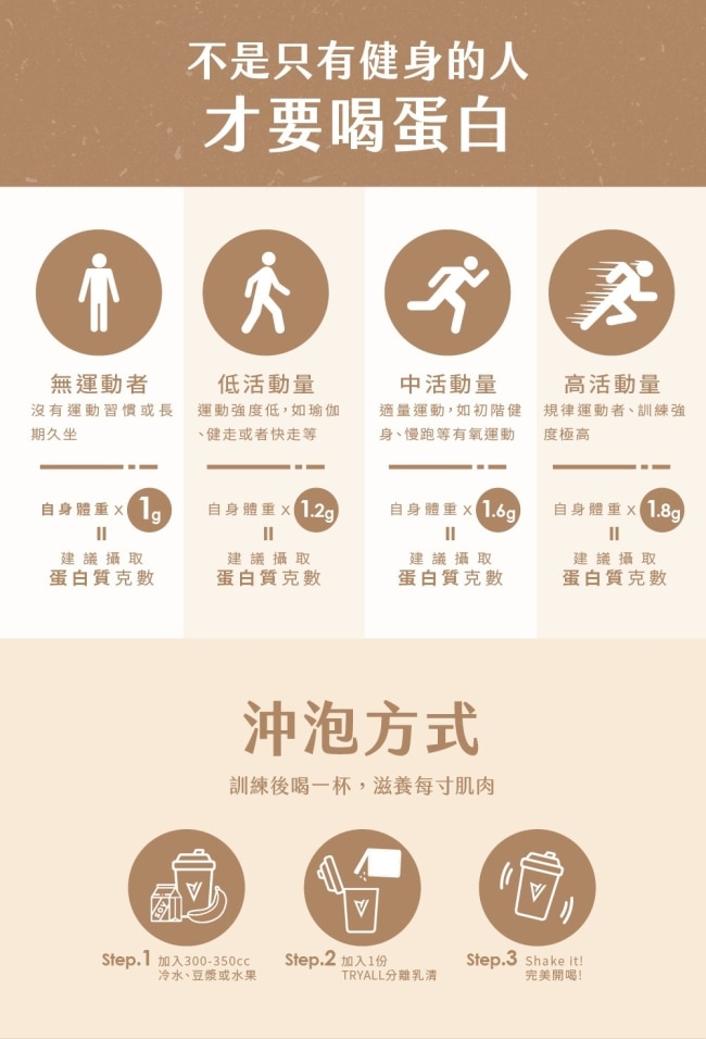 無運動者 : 體重*1=__g蛋白質