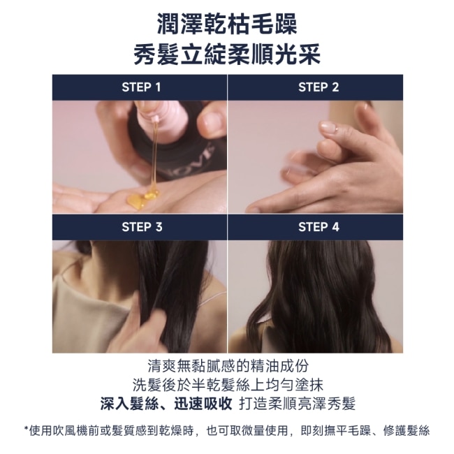採用Light reflex技術帶有絲綢般輕盈空氣感的精油塗在每根髮絲上快速滲透手感柔軟煥發光澤