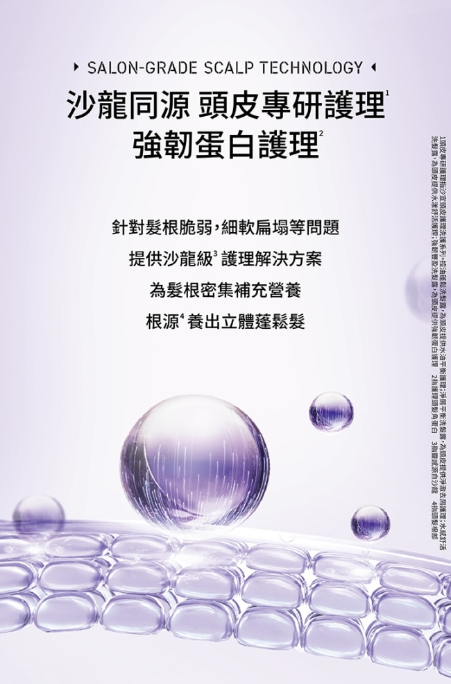 強韌豐盈-針對髮根細軟扁塌髮: 添加生薑根精華 x 胜肽小分子居家享受角蛋白護理