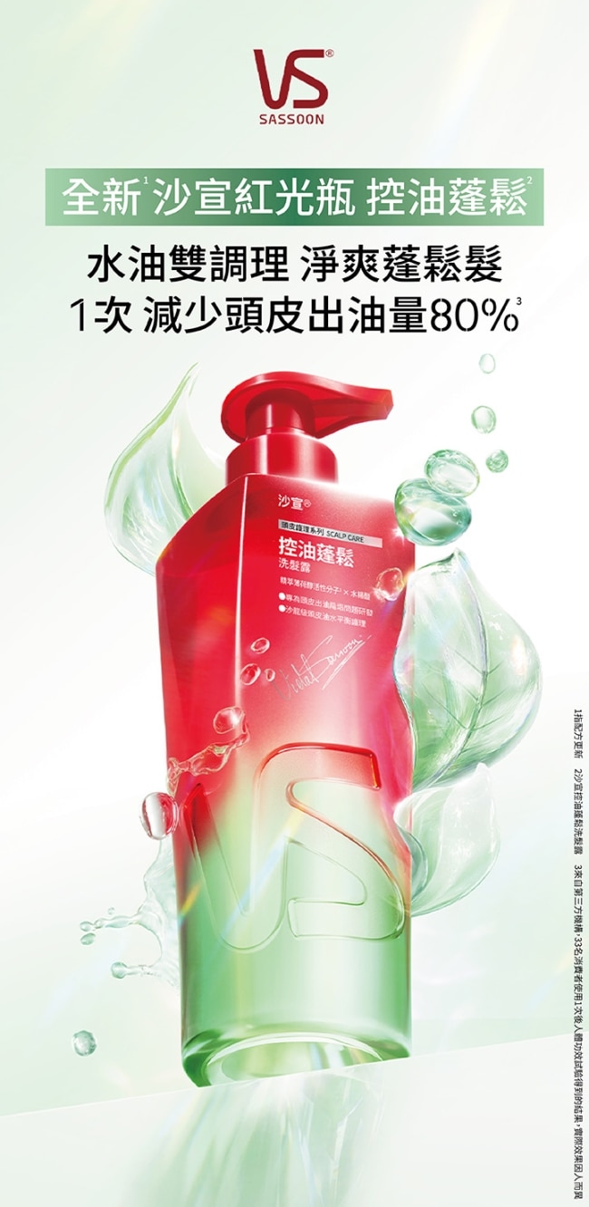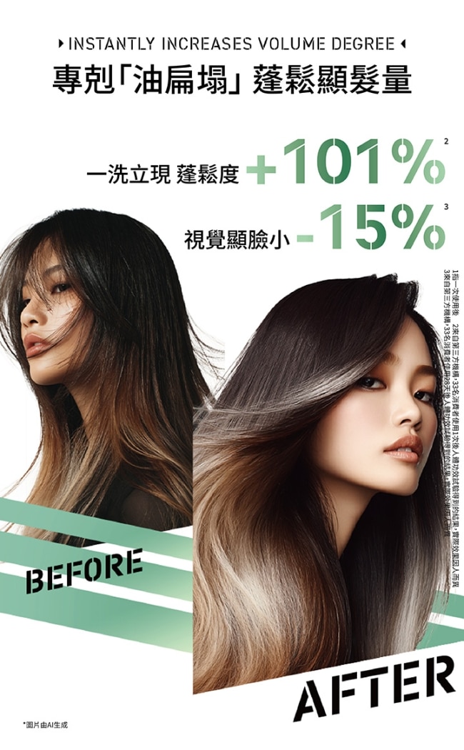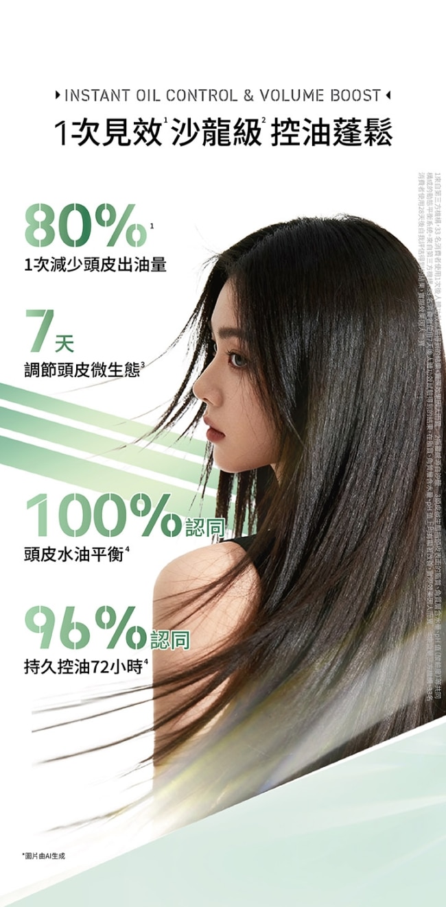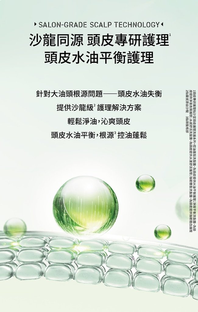 控油蓬鬆-針對頭皮出油扁塌髮: 添加精萃薄荷醇活性分子× 水楊酸居家享受頭皮油水平衡護理
