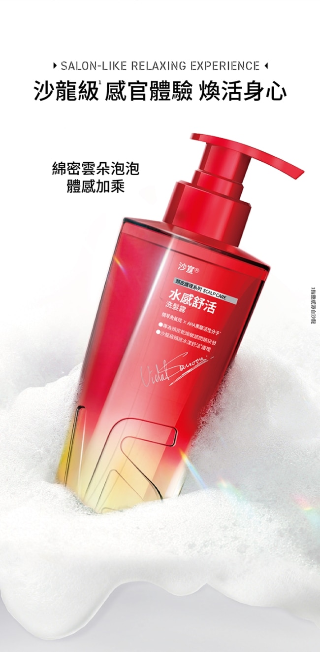 水感舒活-針對頭皮乾燥敏感肌: 添加精萃角鯊烷 × AHA 果酸活性分子居家享受頭皮水漾舒活護理