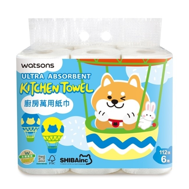 | 商品簡述 | 屈臣氏廚房萬用紙巾112張6捲入(柴犬工房2026) |
