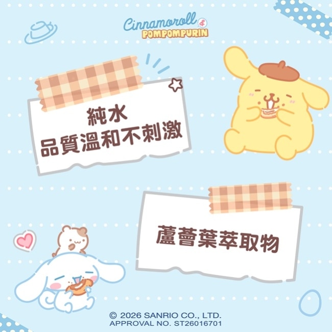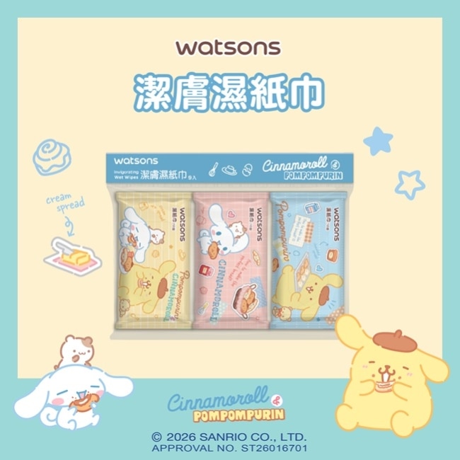 | 商品簡述 | 屈臣氏潔膚柔濕巾10抽9入(布丁狗與大耳狗) |