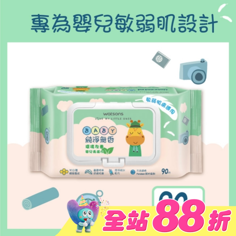 | 商品簡述 | 屈臣氏純淨無香嬰兒柔濕巾90片 |