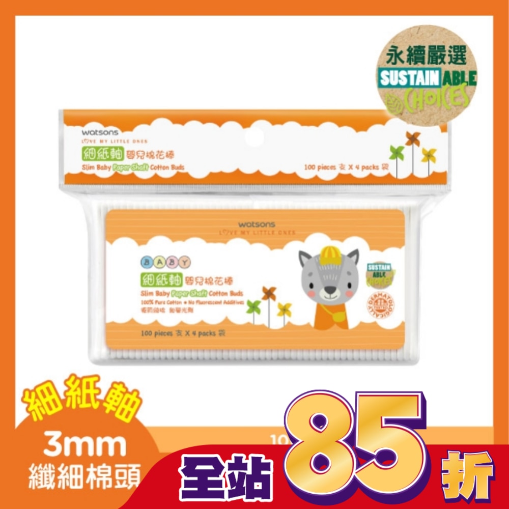 | 商品簡述 | 屈臣氏細紙軸嬰兒棉花棒100支4袋 |