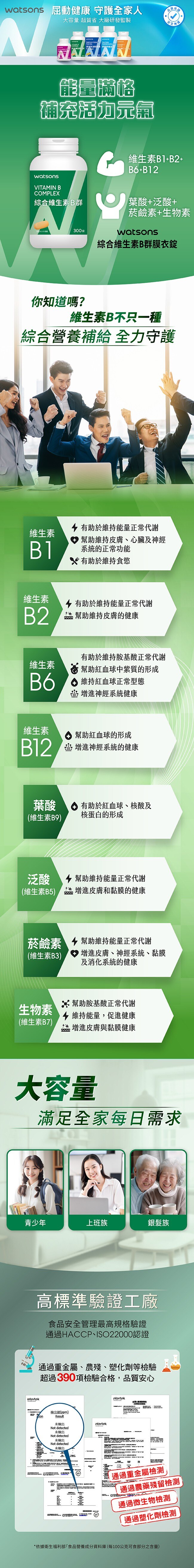 商品名稱WATSONS 綜合維生素B群膜衣錠300錠