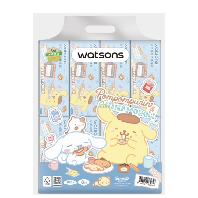 屈臣氏抽取式衛生紙100抽8包入(布丁狗與大耳狗)