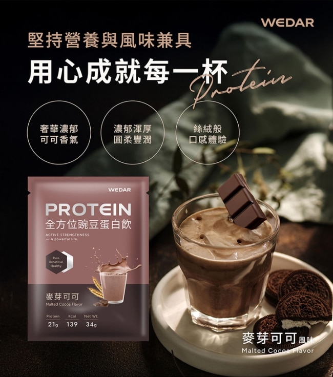 每包21公克以上蛋白質、BCAA及水溶性膳食纖維專為補充蛋白質族群打造