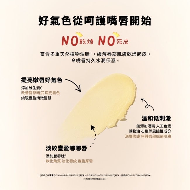 多重植物油脂1緩解乾燥粗糙密集滋潤賦予唇部柔嫩飽滿