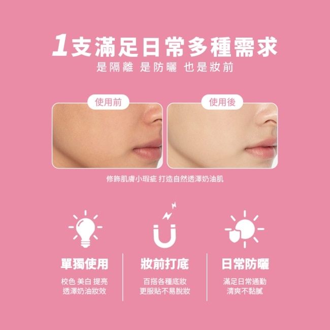 用法取適量均勻塗抹於全臉。於底妝前使用完妝效果更佳。